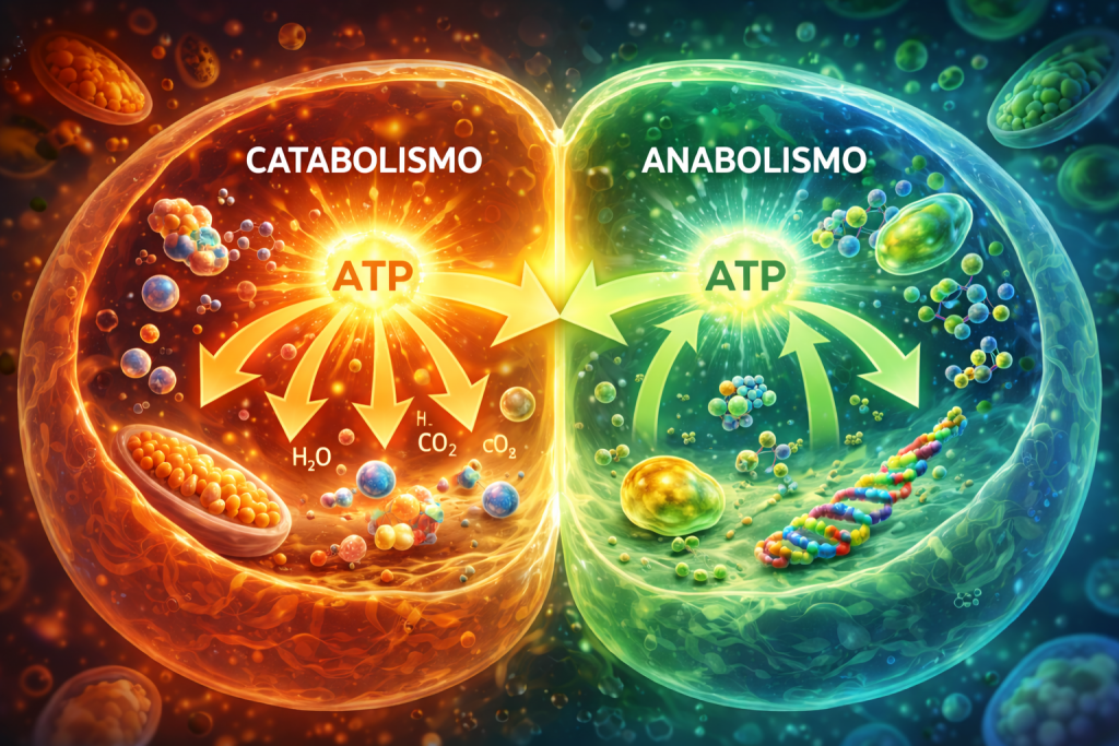 En el catabolismo se produce la degradación (oxidación) de moléculas con el fin de obtener energía en forma de ATP. Durante las oxidaciones, se obtiene, además, coenzimas reducidas, que son necesarias para el anabolismo.
