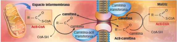 Los ácidos grasos de cadena corta (hasta 12 carbonos) atraviesan la bicapa lipídica de las membranas mitocondriales; los ácidos grasos de cadena larga (más de 12 carbonos) necesitan una lanzadera que los introduzca en la matriz mitocondrial: la lanzadera de carnitina, que consume ATP.