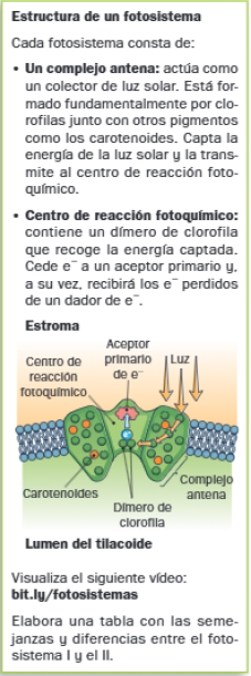 En los tilacoides, los pigmentos están agrupados en dos fotosistemas. Un fotosistema es un complejo multiproteico cuya misión es captar la energía lumínica.