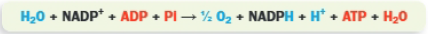 Los H del agua acaban en el NADPH +H+; el O2 se desprende y se sintetiza ATP.