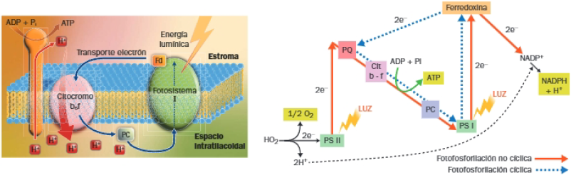 Transporte electrónico fotosintético no cíclico y cíclico