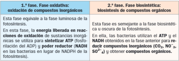 Fases de la quimiosíntesis