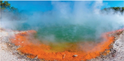 - Bacterias incoloras del azufre: Usan H2S como dador de hidrógenos, abundante en aguas residuales como producto de la descomposición de materia orgánica y en aguas hidrotermales. Por ejemplo: arqueas que toleran las altas temperaturas y viven en chimeneas hidrotermales o en géiseres.