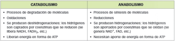 De modo general, los procesos catabólicos son oxidaciones y los anabólicos, reducciones.