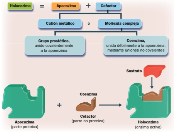 • Enzimas conjugadas o holoenzimas: constan de una parte proteica, la apoenzima, y una parte no proteica, el cofactor.
