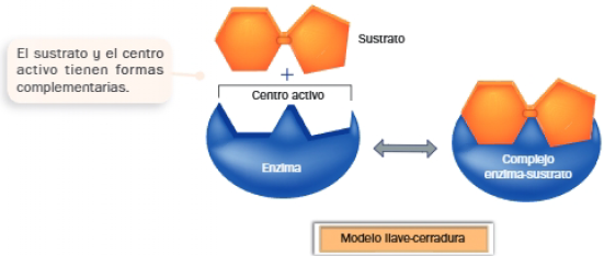 Según este primer modelo de interacción entre el sustrato y la enzima, la estructura del sustrato y la del centro activo serían complementarias; el sustrato encajaría en el centro activo del mismo modo que una llave encaja en la cerradura correspondiente.