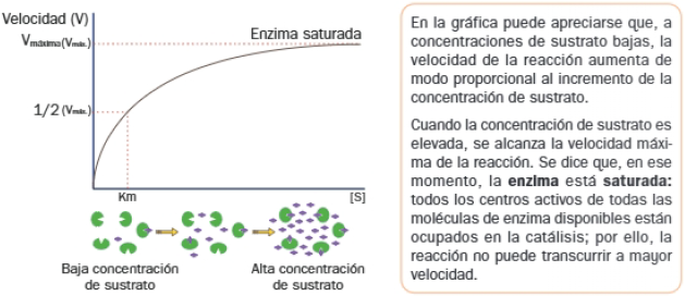 En determinadas condiciones, manteniendo constante la temperatura y la concentración de enzima, al incrementar la concentración de sustrato, se obtiene energía gráfica: