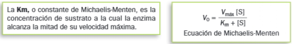 • Una Km baja indica una gran afinidad de la enzima por el sustrato; con muy poco sustrato, la velocidad se incrementa notablemente.