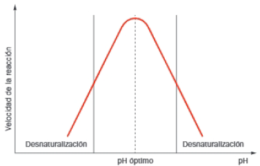 Para cada enzima existe un pH óptimo en el que la conformación espacial de la proteína es la óptima para su acción catalítica; a este pH la velocidad de la reacción enzimática será máxima.