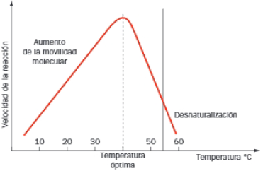 En general, la velocidad de las reacciones químicas aumenta con la temperatura, por cada 10 grados centígrados de incremento de la temperatura, la velocidad de la reacción se duplica. En las reacciones catalizadas por enzimas, esto solo es posible hasta una temperatura «crítica» que se corresponde con la temperatura óptima, en la que la enzima alcanza la máxima velocidad de reacción.