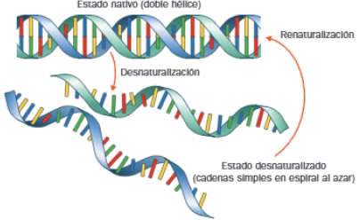 En ciertas condiciones de temperatura, en torno a 100 grados centígrados, elevadas concentraciones salinas y pH por encima de 13, la molécula de ADN puede perder su estructura secundaria.