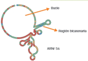 El ARN es por lo general monocatenario, la secuencia lineal de bases leídas del extremo 5′ al extremo 3′ constituye su estructura primaria que, en algunos casos, presenta una estructura secundaria de zonas con doble hélice que forman horquillas y zonas no complementarias entre las horquillas, son los lazos o bucles.